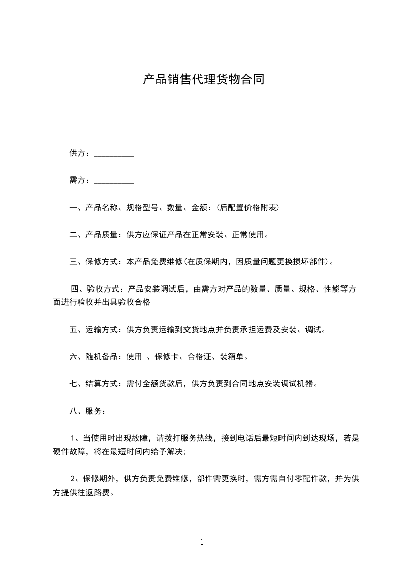 七、结算方式:需付全额货款后,供方负责到合同地点安装调试机器。