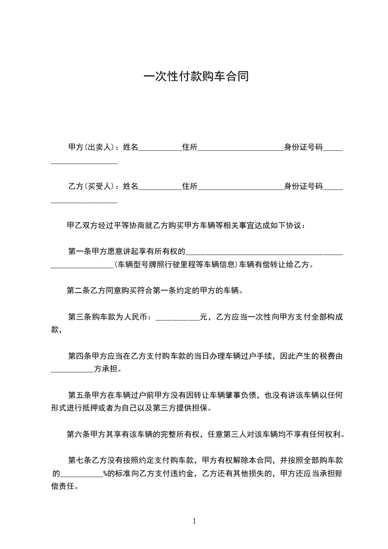 第三条购车款为人民币:___________元,乙方应当一次性向甲方支付全部构成款,