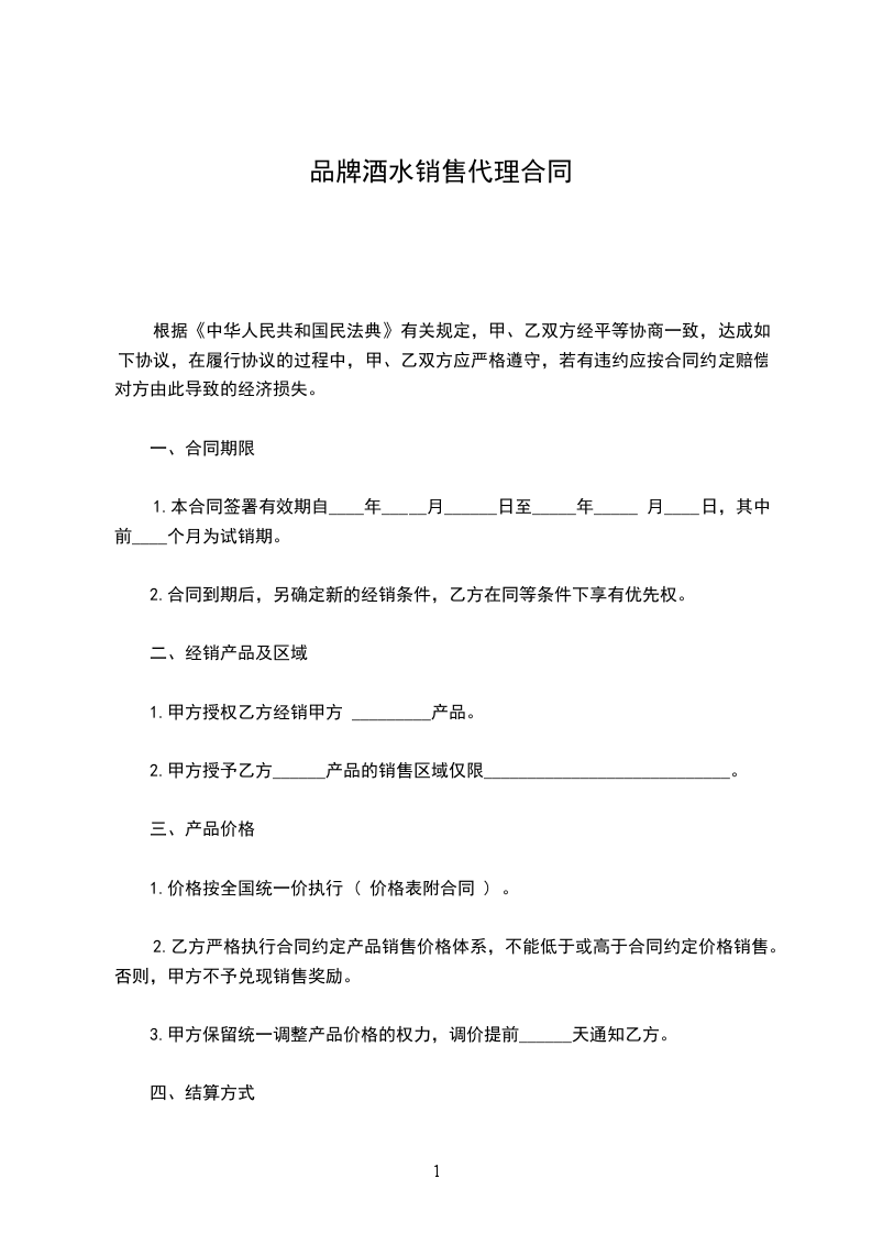 ______系列啤酒指定 (市、区)一家总代理,未经供方许可,需方不得自行转让买卖合同,否则则视合同无效。需方在合同约定的县、市、地区内销售,不得冲击 县、市市场。在所销售区域内销售价格必须统一,不得降价销售,否则供方有权单方终止合同或采取惩罚 ,扣留全年返利和保证金。