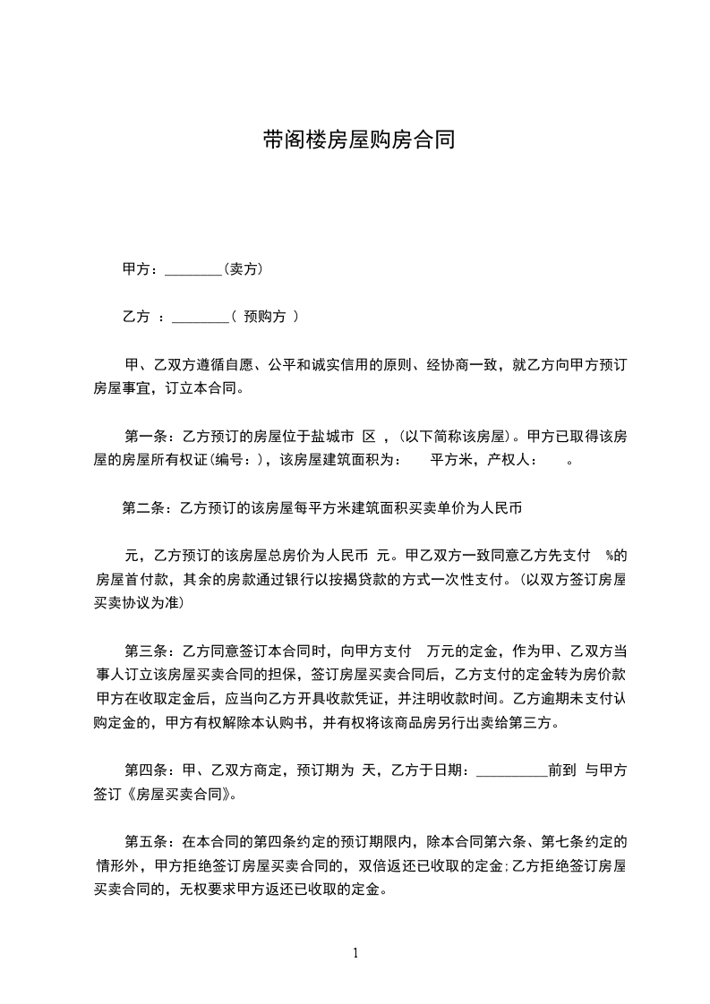 1、甲方自愿将__________________的房屋卖给乙方所有,该房屋为__________________的形式,其中__________________为单独阁楼。