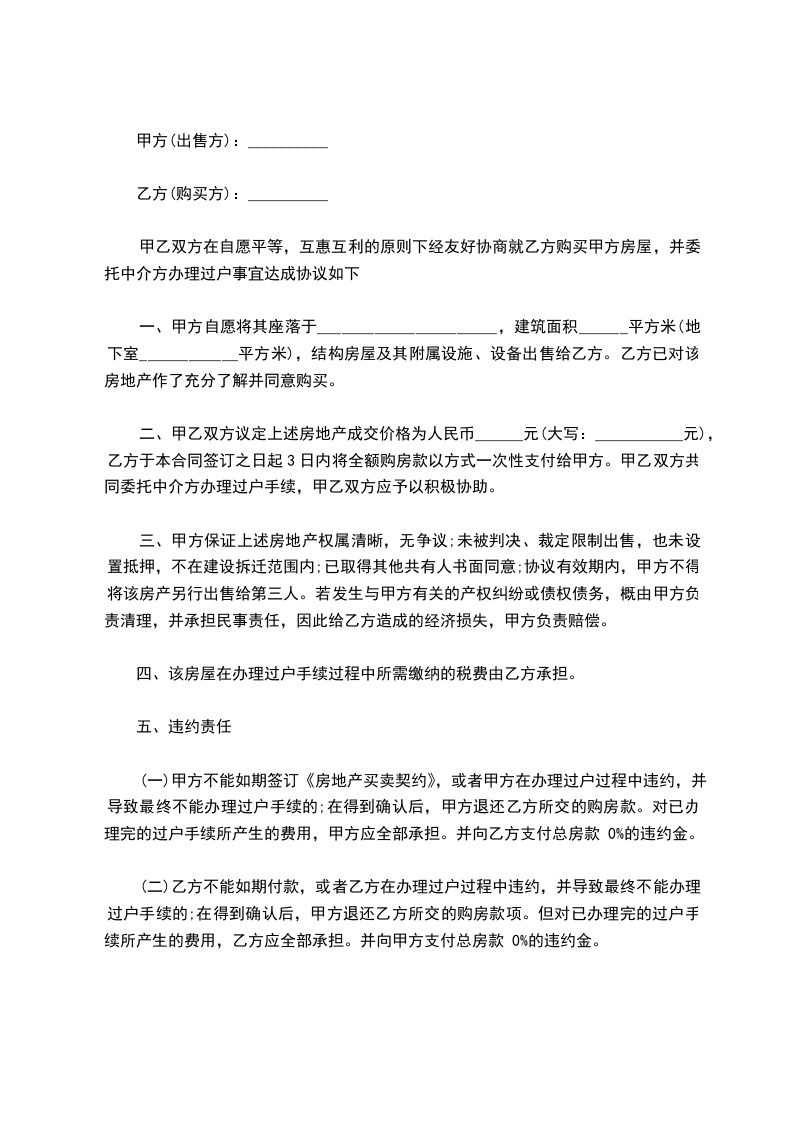 5、甲方有义务配合乙方办理房屋交易的过户手续。