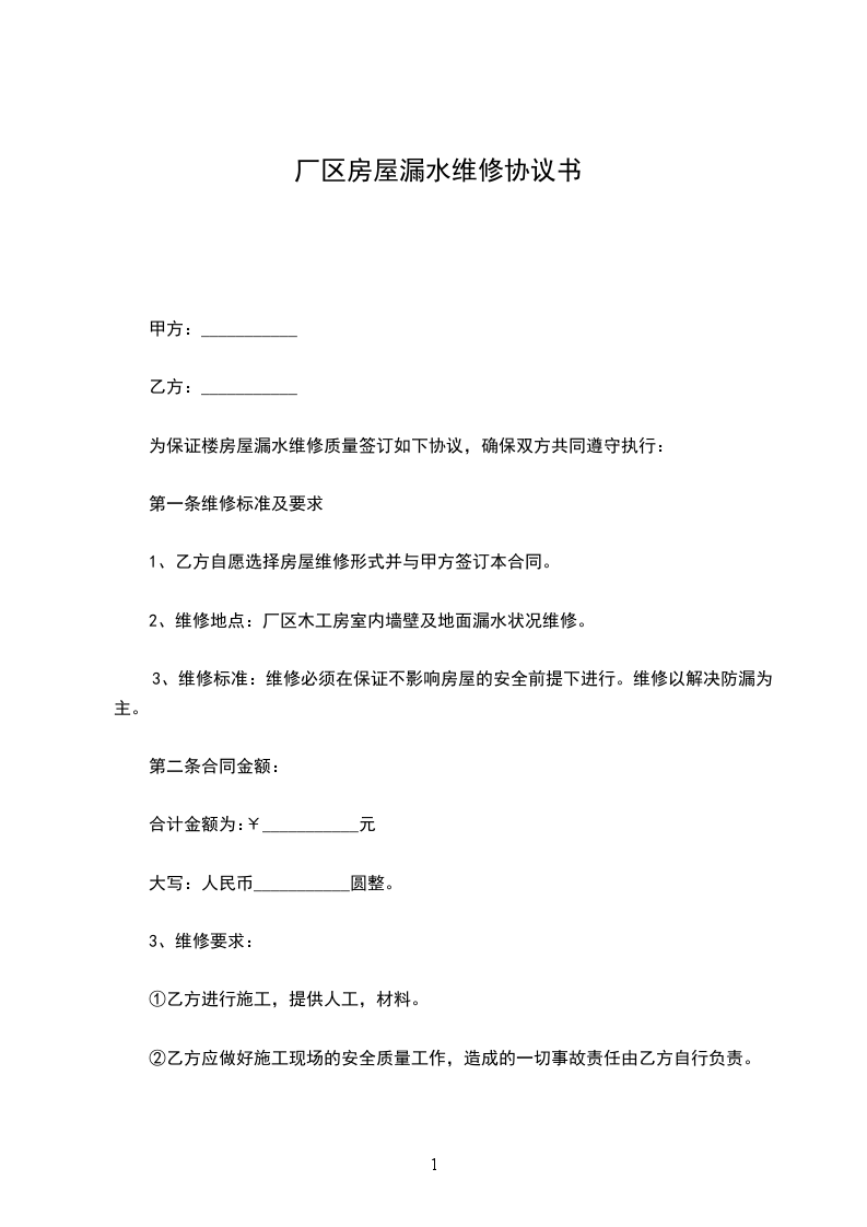 ________(以下简称甲方)和________(以下简称乙方)就甲方的房屋所出现的渗水问题及隔热制作达成如下维修协议协议:因甲方宿舍楼在使用期间出现渗水问题,乙方负责对甲方的房屋屋顶渗水及隔热以及外墙壁剥落进行维修经双方协商,协议如下: