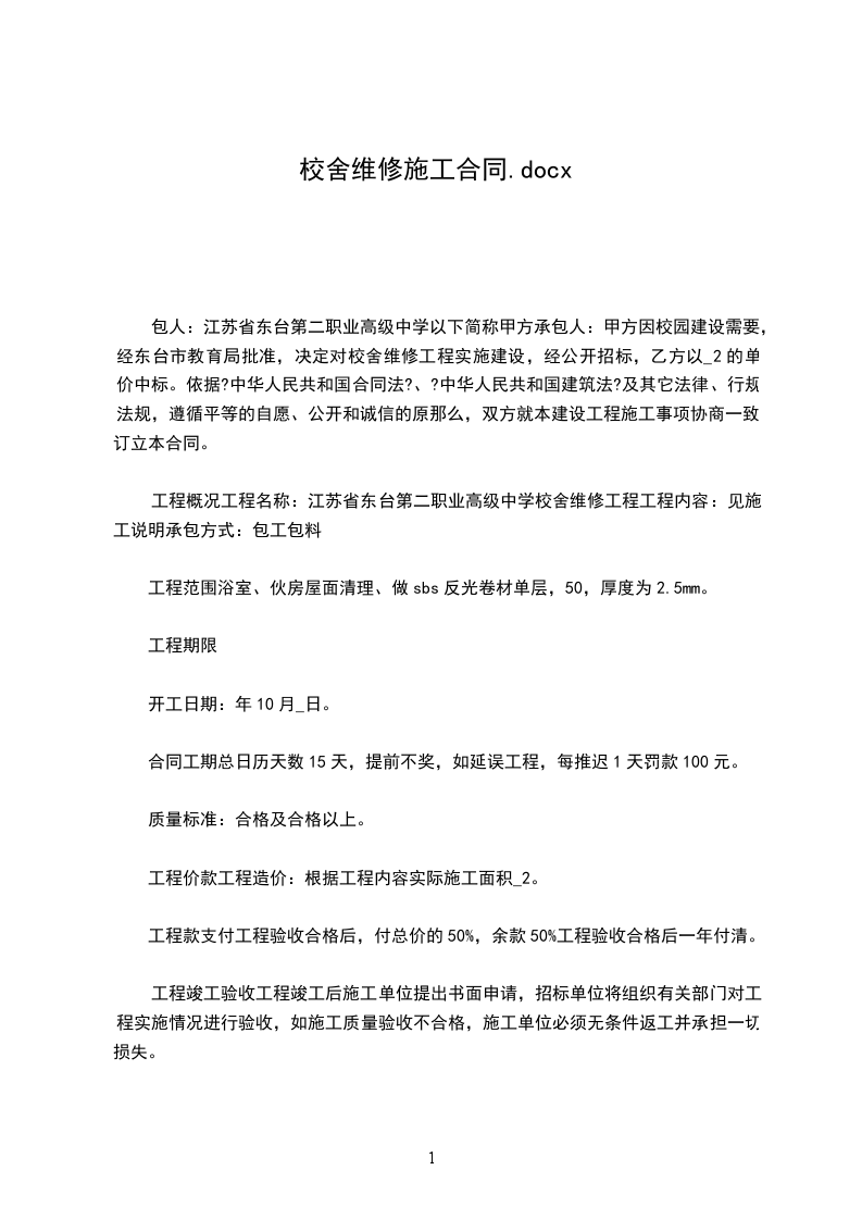 工程名称:________________职业高级中学校舍维修工程