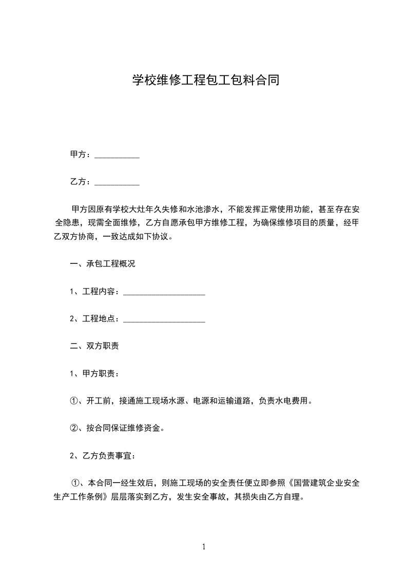承包方式:包工包料