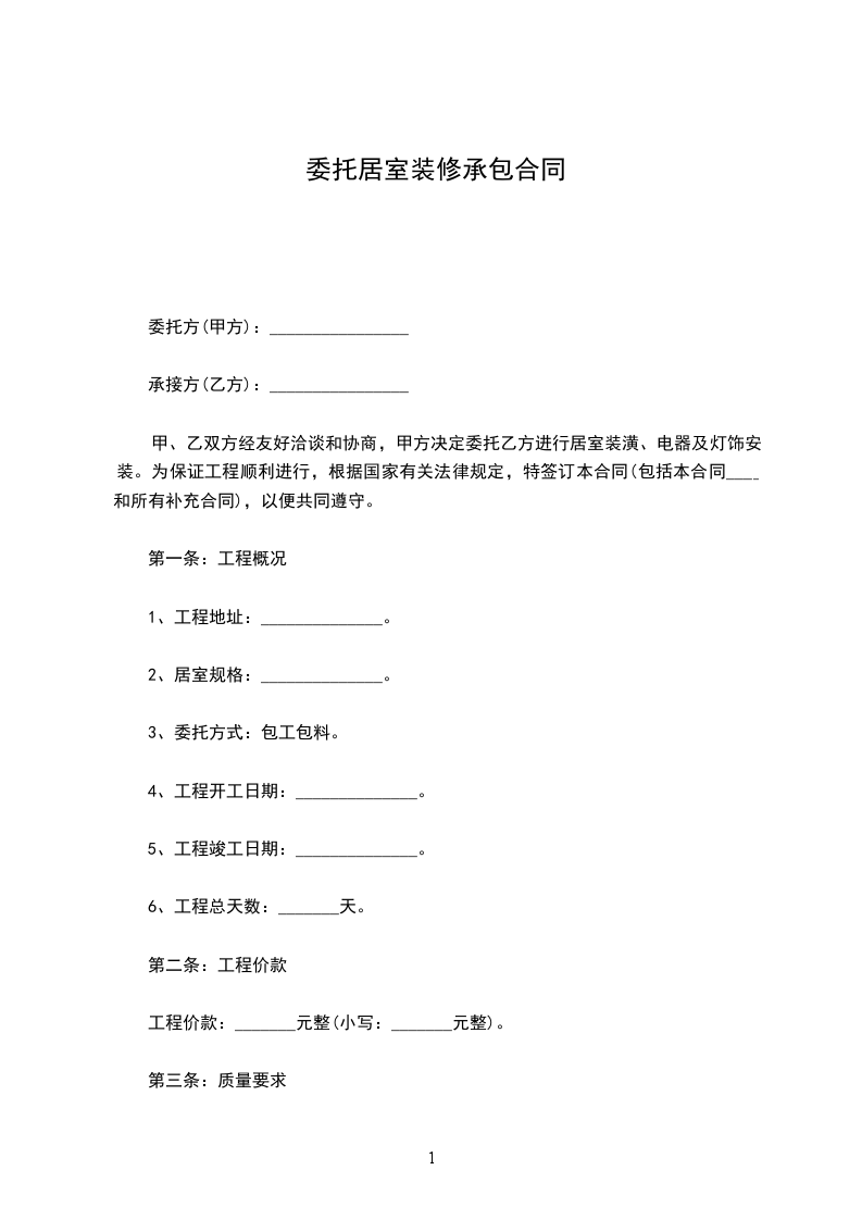 甲、乙双方经友好洽谈和协商,甲方决定委托乙方进行居室装潢。为保证工程顺利进行,根据国家有关法律规定,特签订本合同(包括本合同附件和所有补充合同),以便共同遵守。