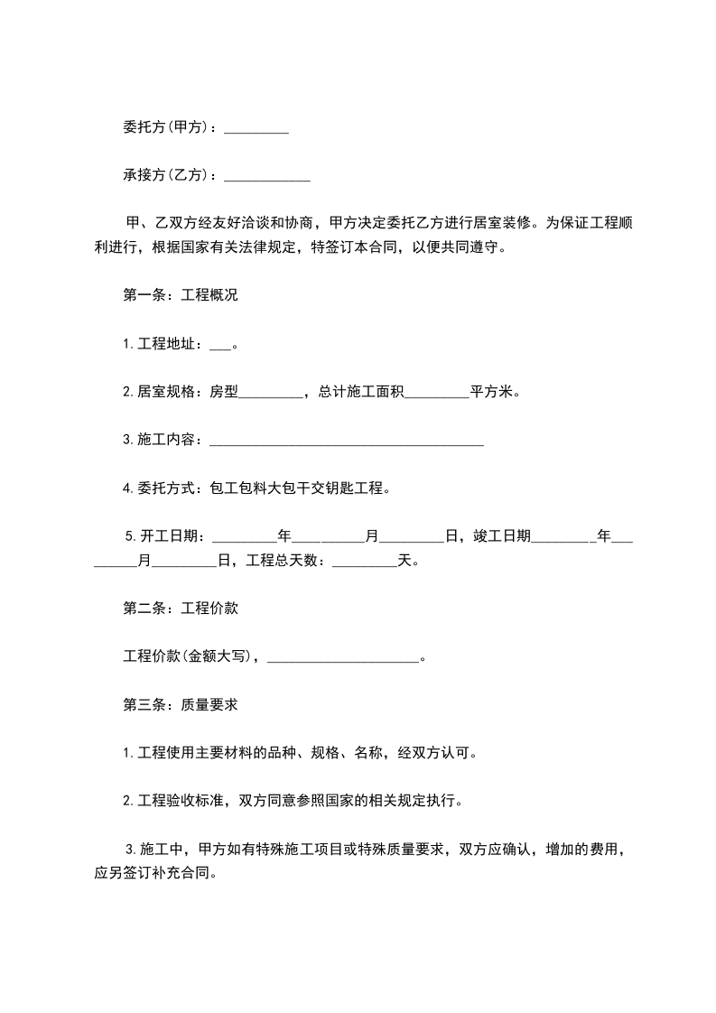 2、除上述装潢要求外,如有增加工作,双方另行协商,施工费不得高于同类平均水平。