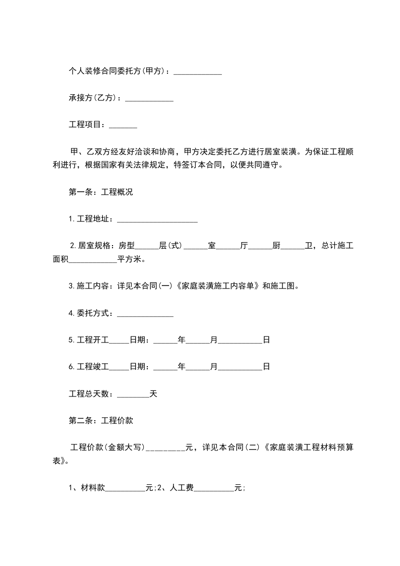 8、未经甲方许可,乙方不得携带任何建材出门,若发现此类现象,按材料价格加倍从人工费中扣除。