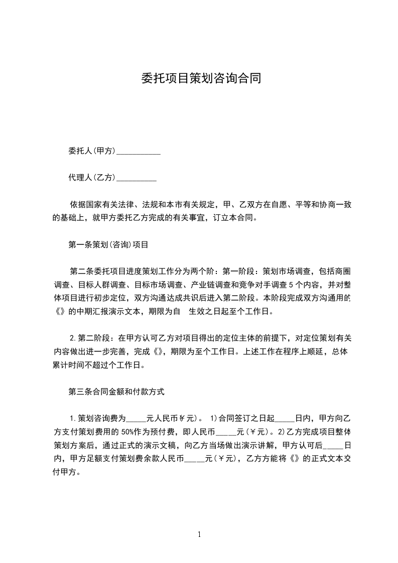 经甲、乙双方友好协商,本着平等互惠、优势互补的原则,甲方现将其开发的位于__(暂定名)项目(下称本项目)的全程策划与销售工作全权委托给乙方,现就有关事宜达成以下条款,以资双方共同遵守。本合同内容不因项目及公司名称改变而改变。