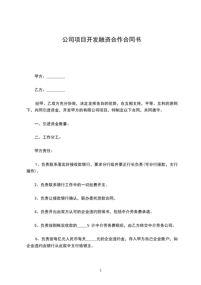 1.甲方委托乙方为完成该项目所需的全部或部分资金介绍出资方,乙方接受甲方委托,在本合同签订后,甲方在三年内与乙方推荐的单位或个人达成出借、赞助、投资等合法方式,均视为融资成功,甲方均要相应履行本合同。
