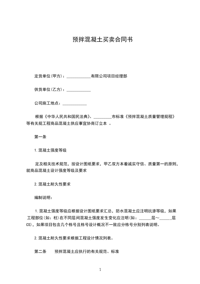 根据《中华人民共和国民法典》、_________市标准《预拌混凝土质量管理规程》等有关规工程商品混凝土供应事宜协商订立本 。