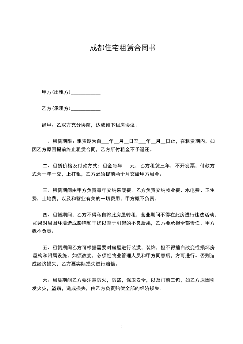 一、租赁期限:租赁期为自___年__月__日至___年__月__日止,在租赁期内,如因乙方原因提前终止租赁合同,乙方所付租金不予退还。