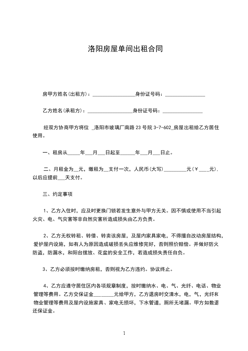 一、甲方将位于________市________街道________小区________号楼________号的房屋出租给乙方居住使用,租赁期限自________年________月________日至________年________月________日,计________个月。