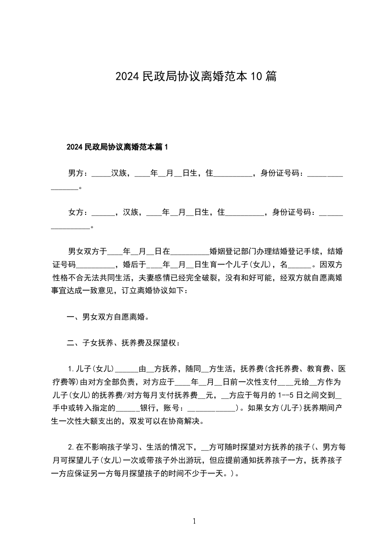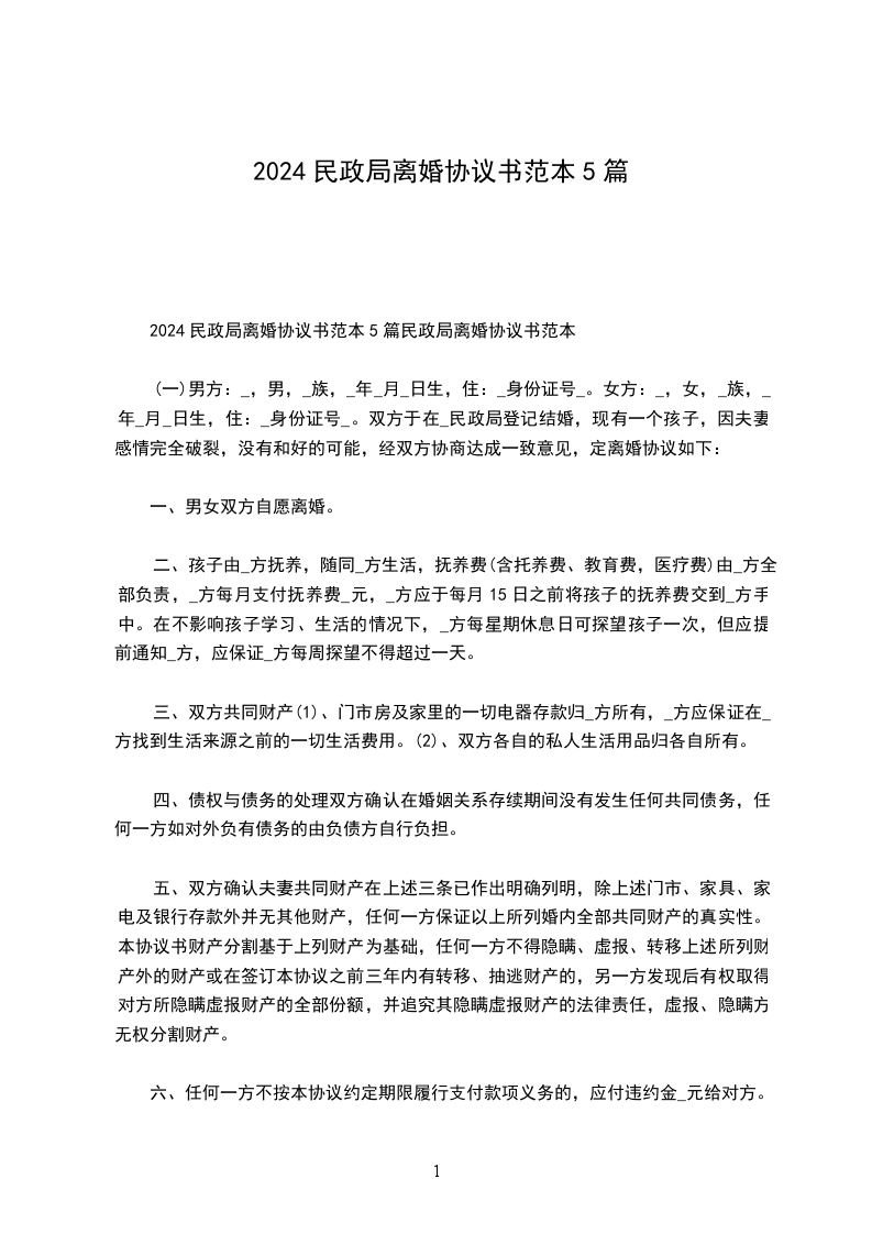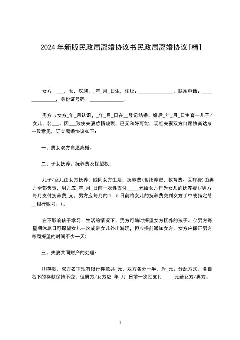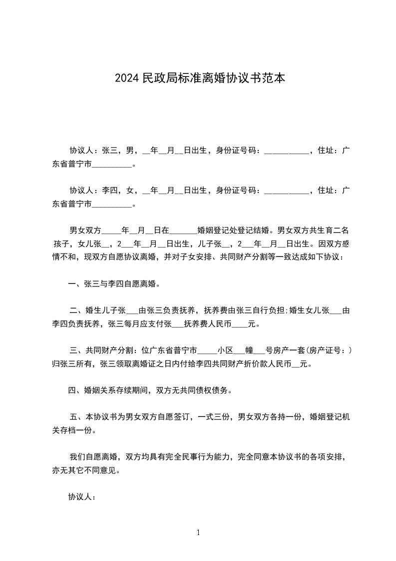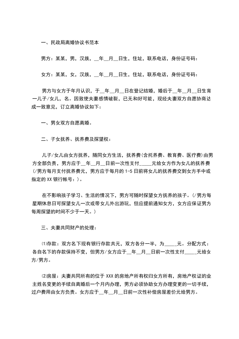 一、民政局离婚协议书范本