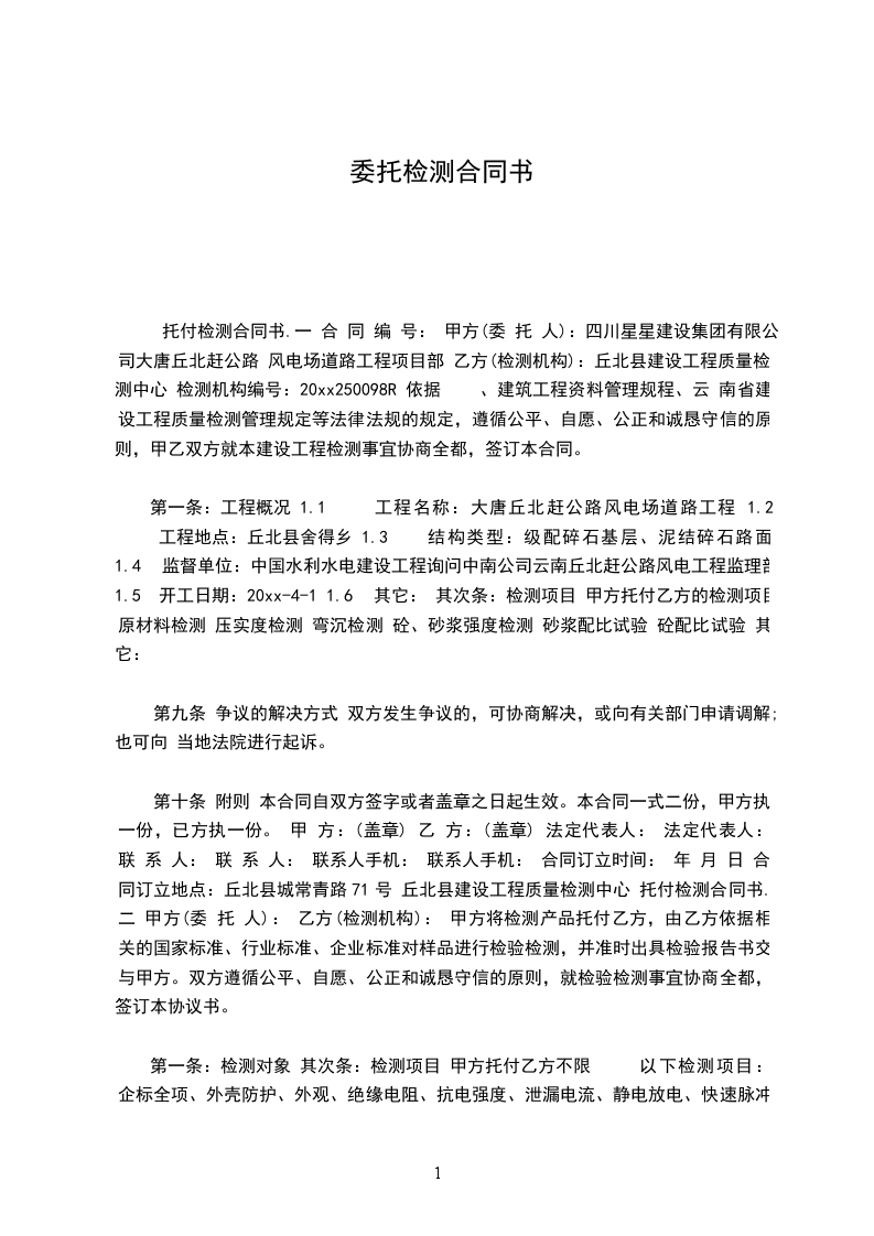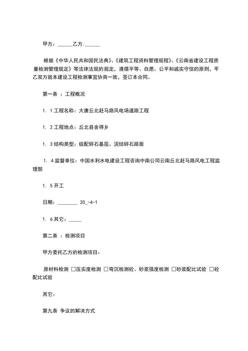 1、甲方委托乙方在资质许可范围内对该工程的标准试验和所用的原材料、构件、产品等进行试验检测。乙方不负责所超出乙方资质的检测项目的试验检测。