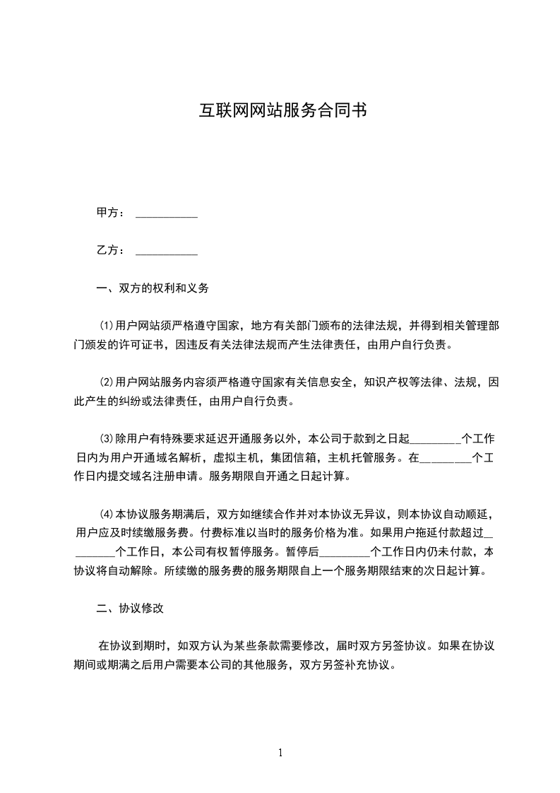 (3)除用户有特殊要求延迟开通服务以外,本公司于款到之日起_________个工作日内为用户开通域名解析,虚拟主机,集团信箱,主机托管服务。在_________个工作日内提交域名注册申请。服务期限自开通之日起计算。