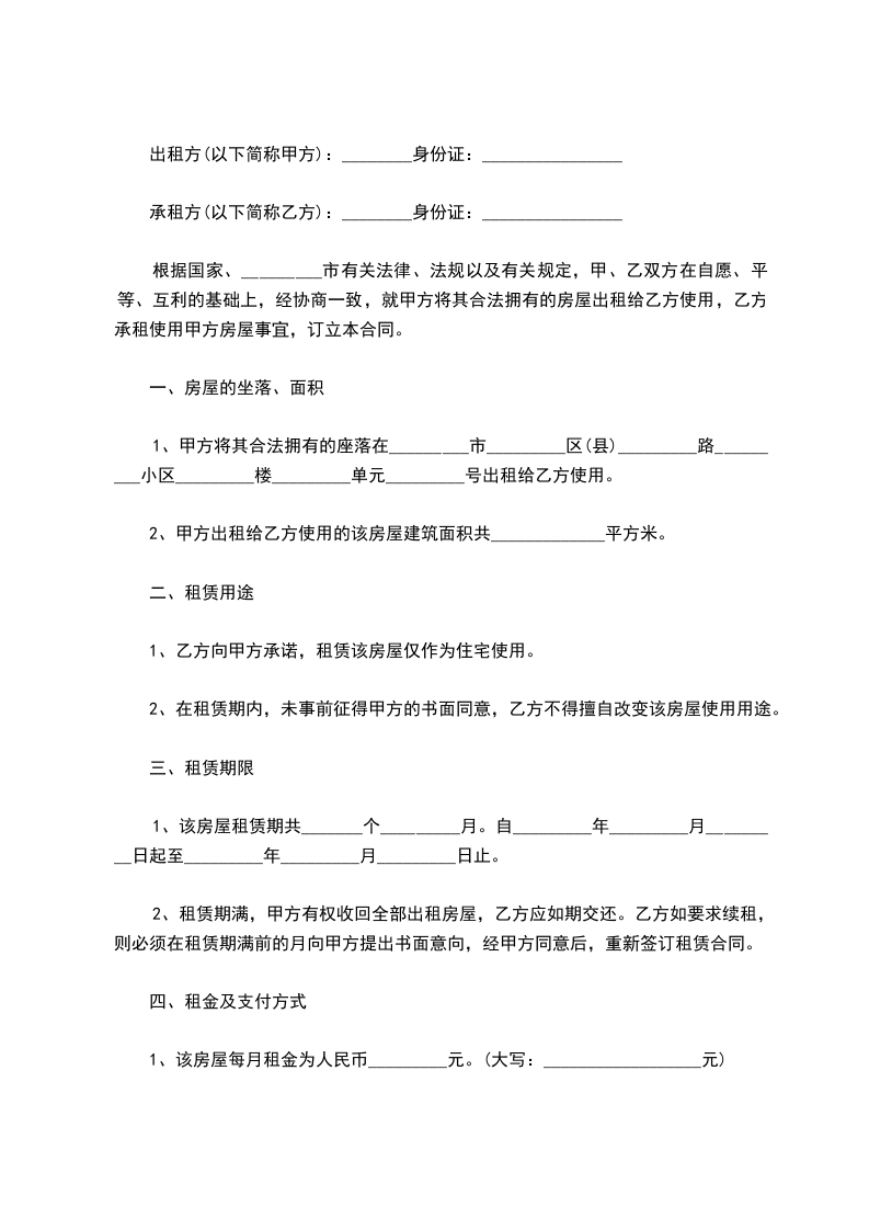 1、该房屋每月租金为人民币_________元。(大写:__________________元)