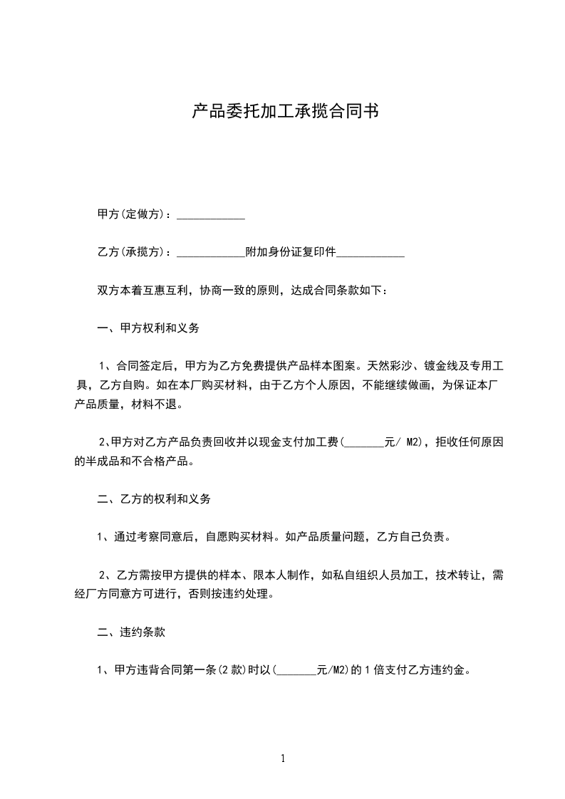 2、甲方对乙方产品负责回收并以现金支付加工费(_______元/M2),拒收任何原因的半成品和不合格产品。