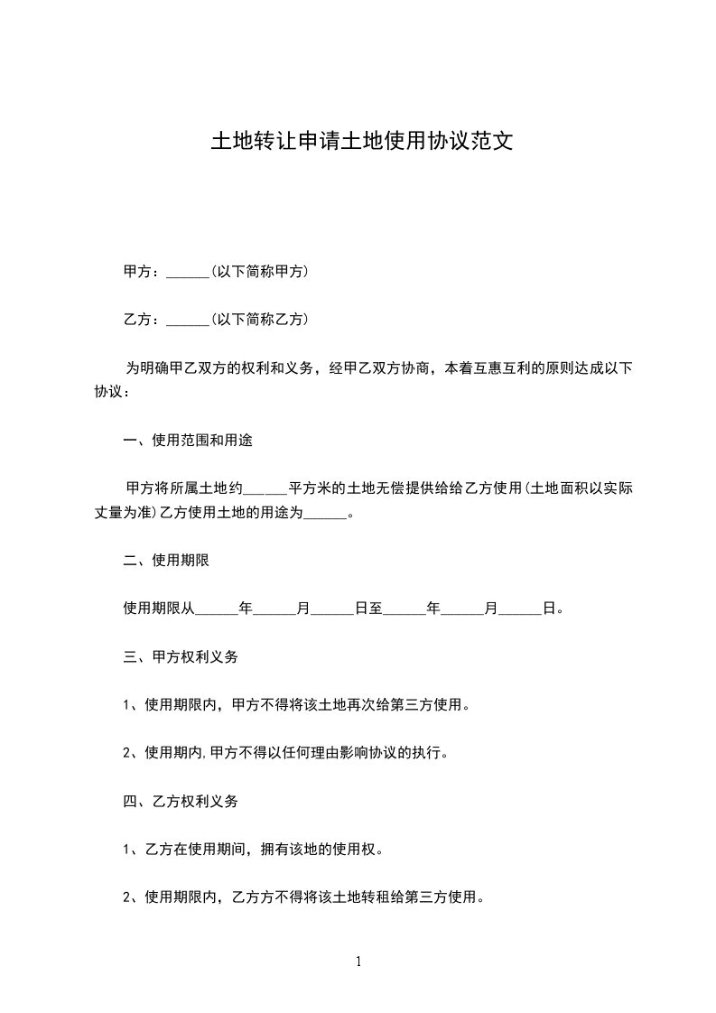 甲乙双方根据我国有关法律规定,本着公平自愿、平等互利,协商一致的原则,就土地使用权转让事宜达成如下协议,以资双方共同遵守:
