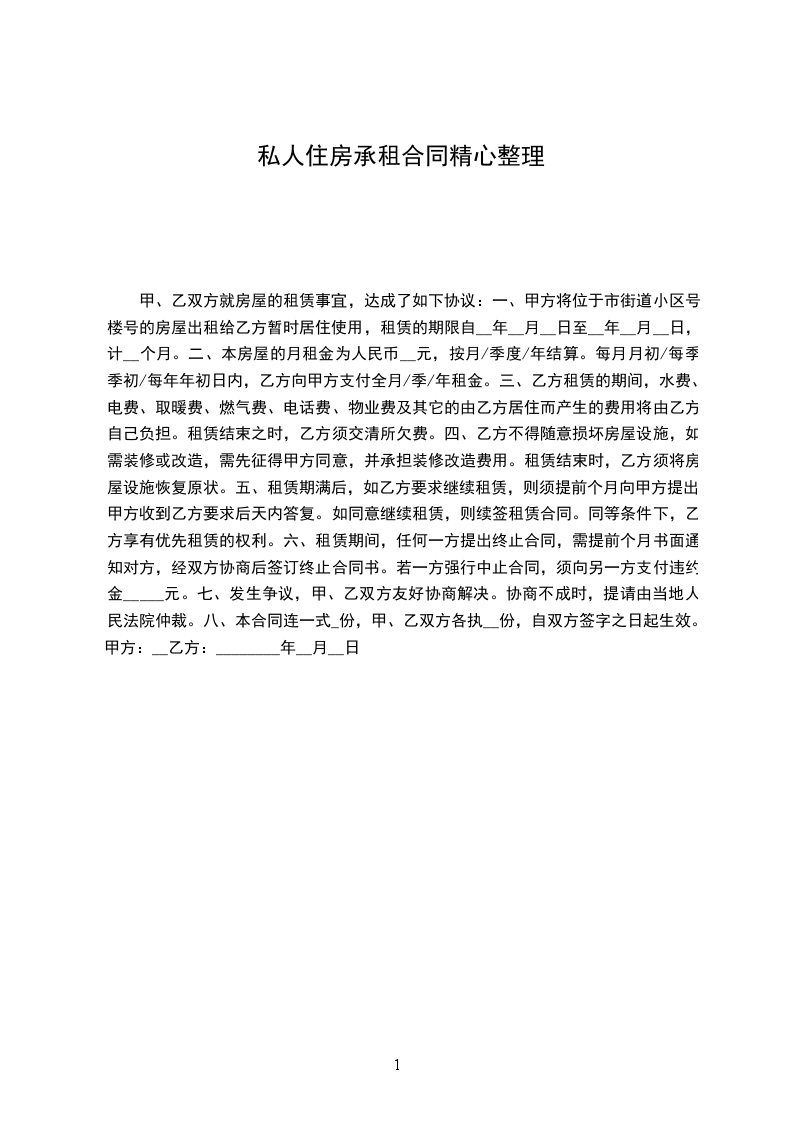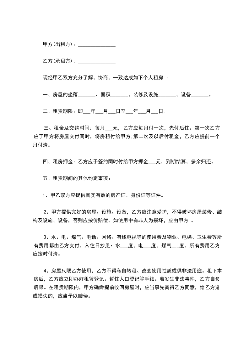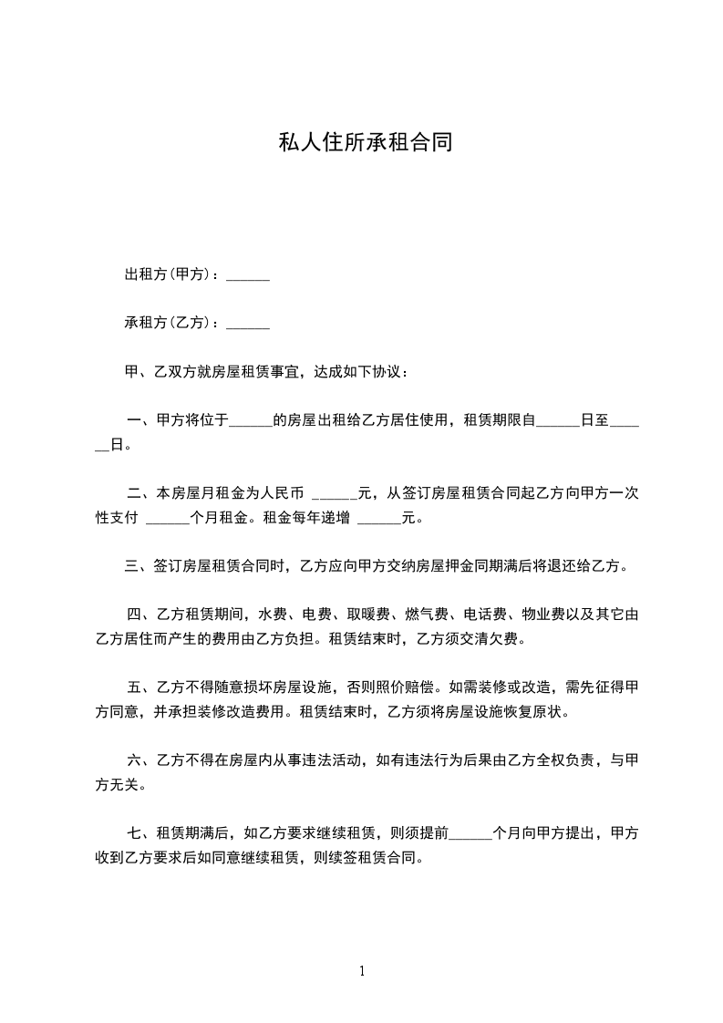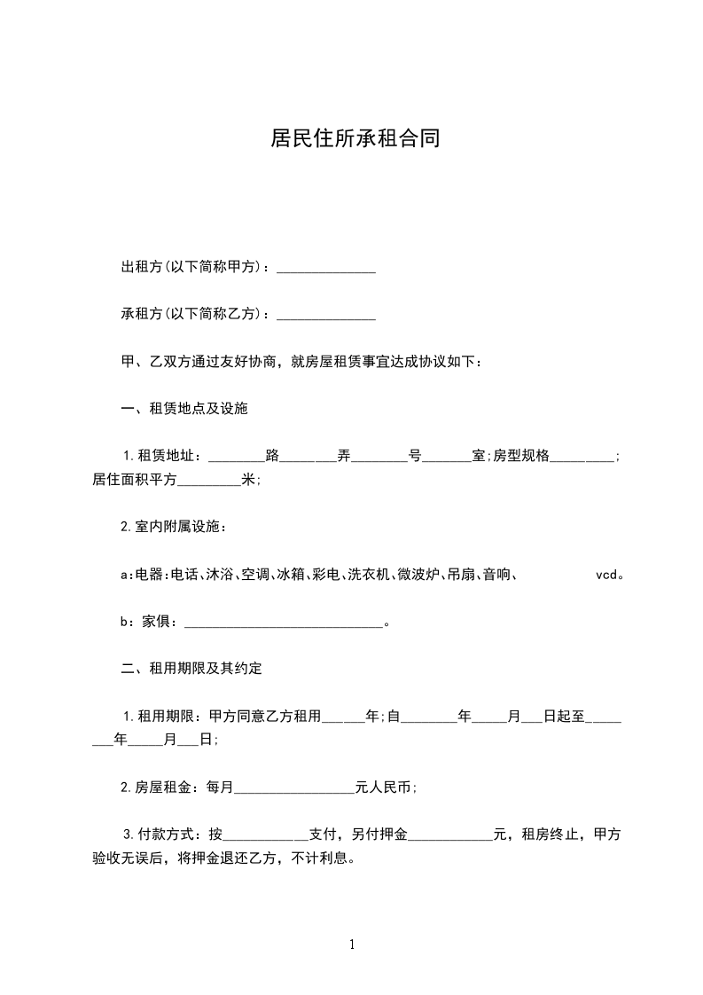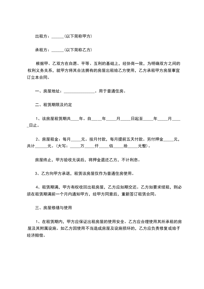 一、甲方将位于______的房屋出租给乙方居住使用,租赁期限自______日至______日。