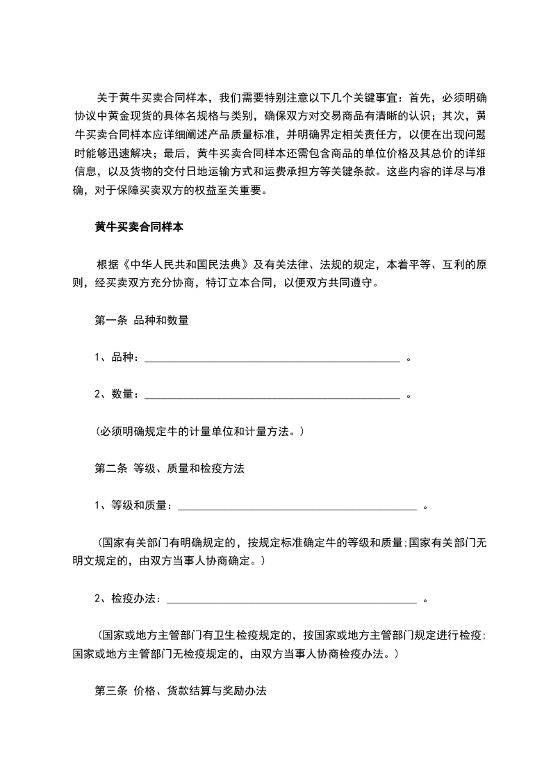 1.甲丙双方在自愿原则下,经甲方认真挑选,双方一致同意,第_________号牛作价_________元。