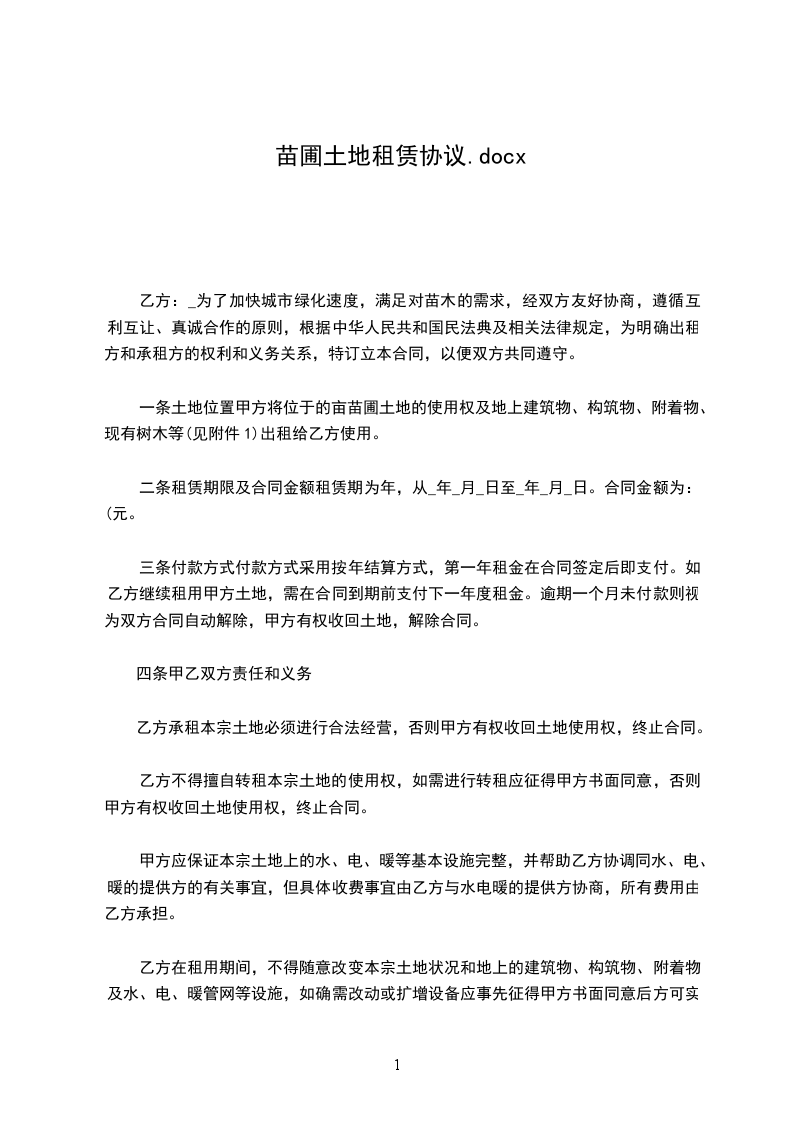 经甲、乙双方协商,就甲方自愿将位于__________苗圃社,面积为_____亩,计_____平方米(长_____米,宽_____米的南大长垅地)的土地经营使用权及处置权、收益权永久转让给乙方的有关事宜,达成如下协商意见: