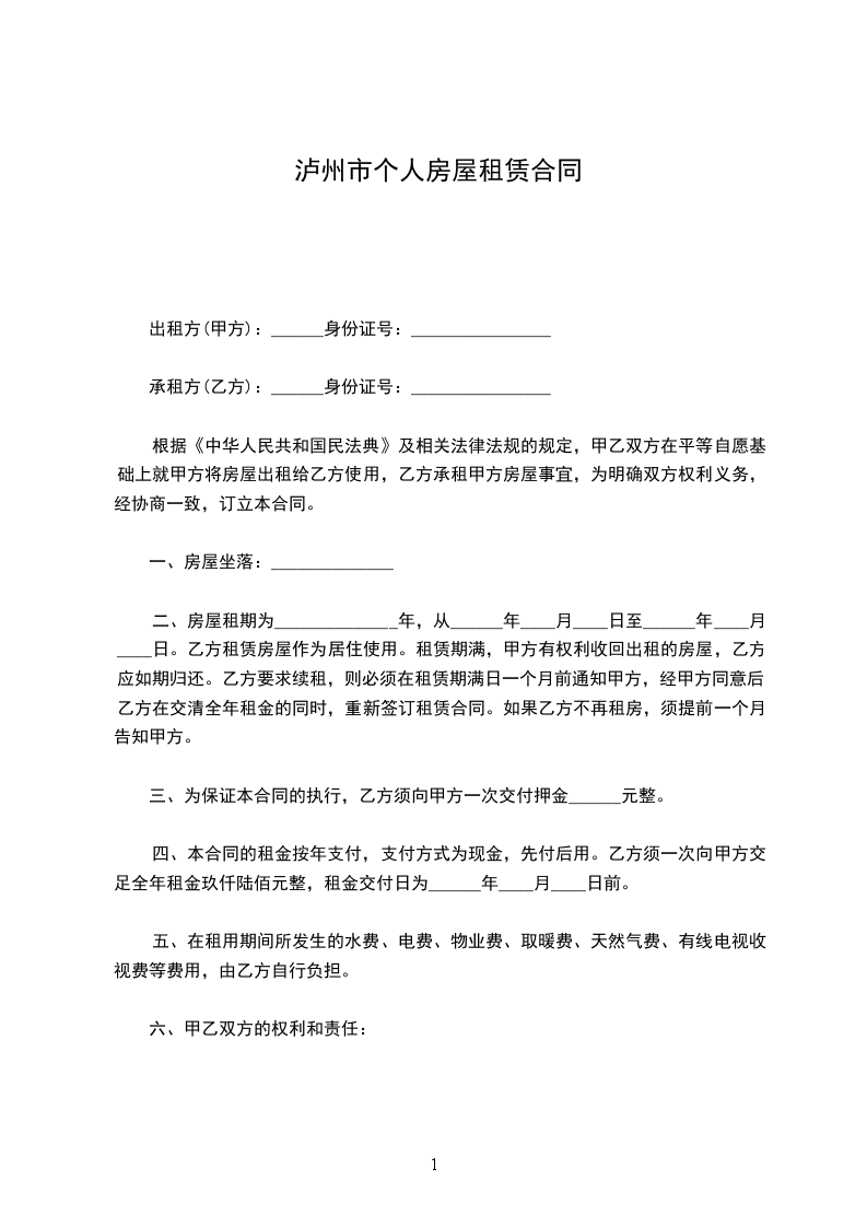 租赁地址:________区_________号_______室;房型规格______________。