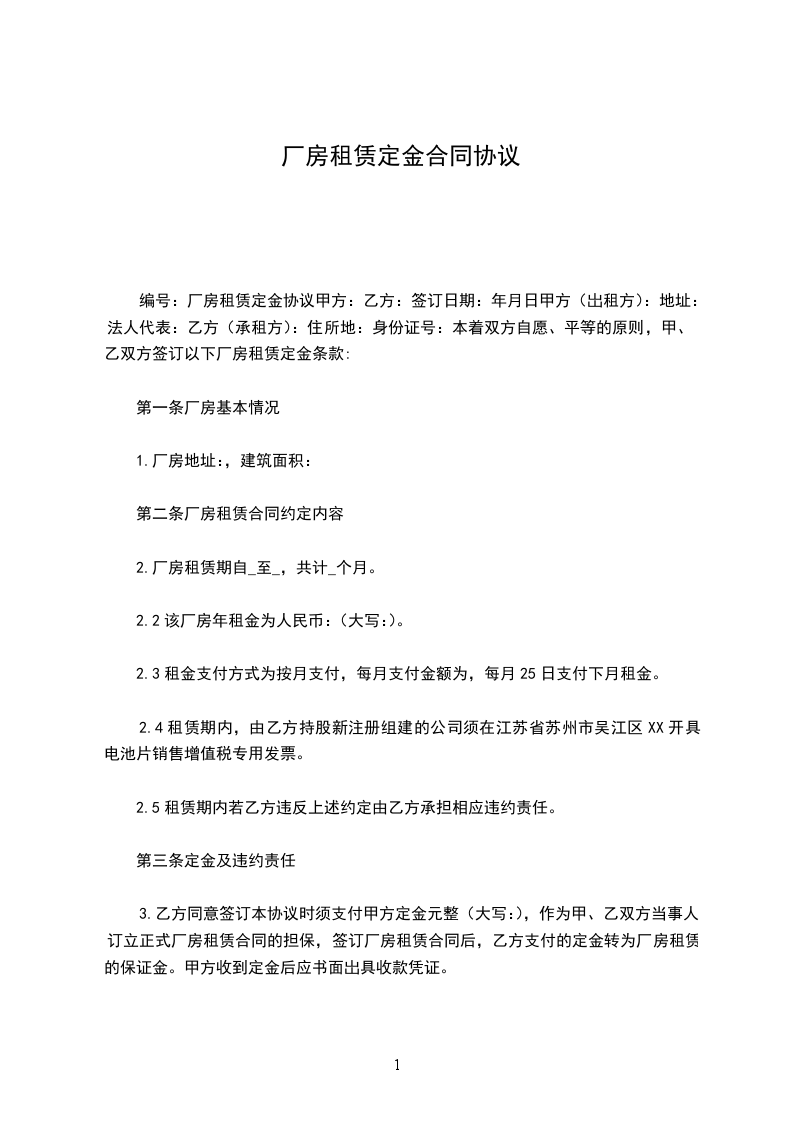 3、甲、乙双方一旦签订合同,乙方应向甲方支付厂房租赁保证金,保证金为一个月租金。租金应预付三个月,支付日期在支付月5日前向甲方支付租金。