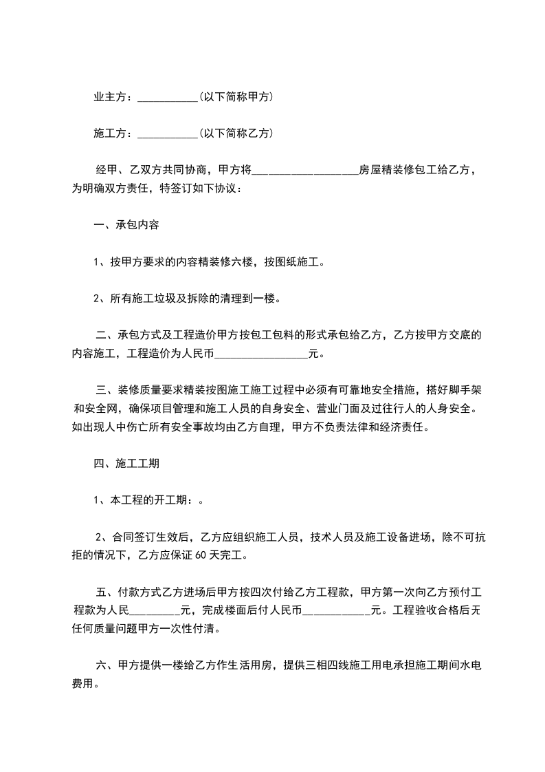 1、甲方:负责提供整个工程的使用、设计要求;提供现场使用的水、电位置;提供材料运输通道、必要的材料堆放场地及原楼的设计图纸;对装修工程所涉及的配电系统、管道系统、给排水总阀位置应负责指明;施工场地要平整。
