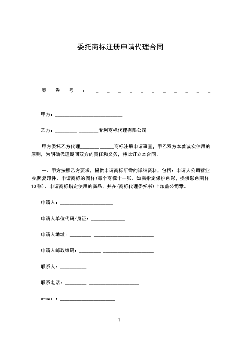 甲方就 一案委托乙方代理商标事务,现经双方协议,订立下列条款,共同遵守: