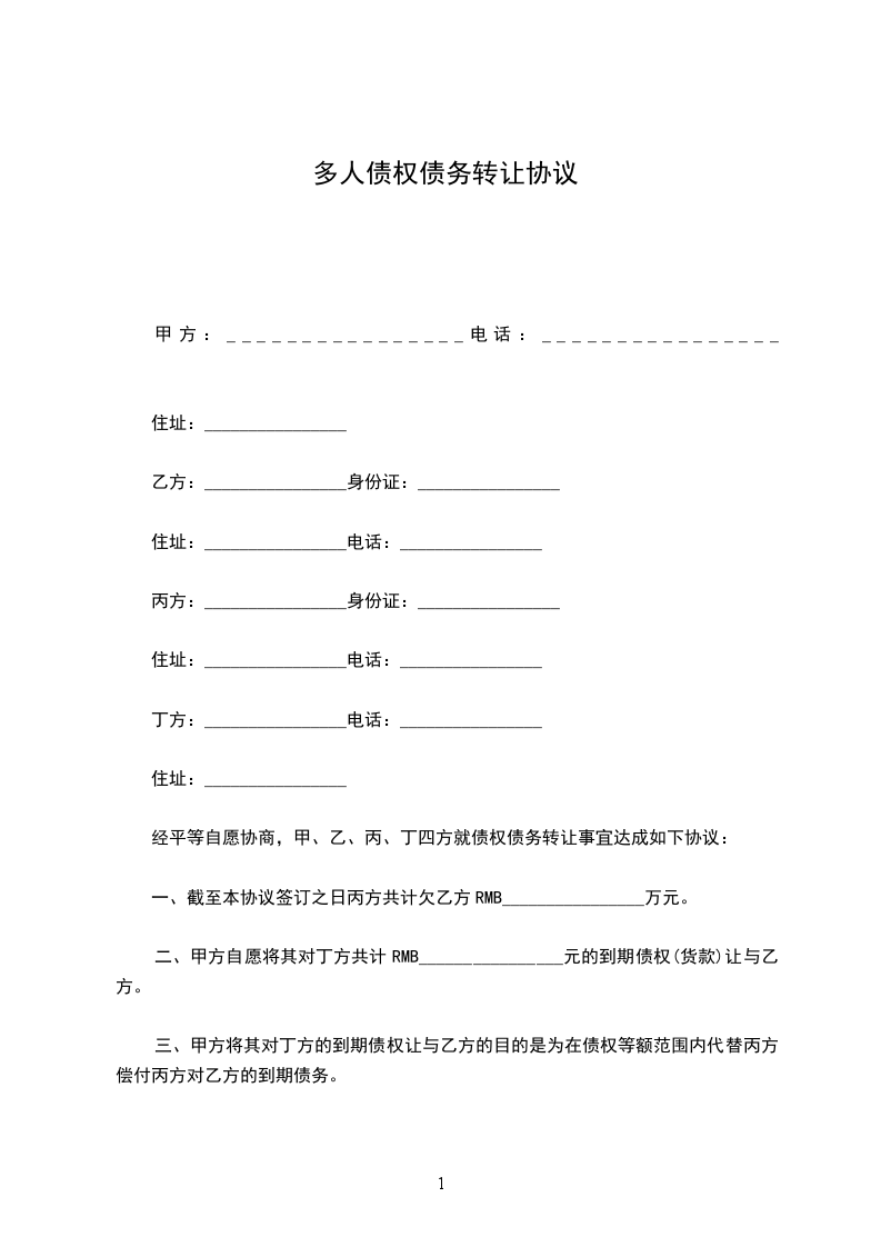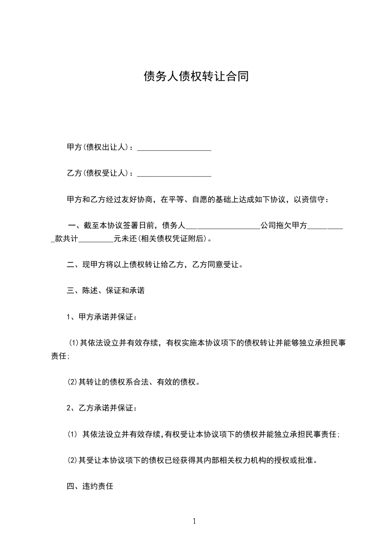 一、截至本协议签署日前,债务人___________________公司拖欠甲方__________款共计_________元未还(相关债权凭证附后)。