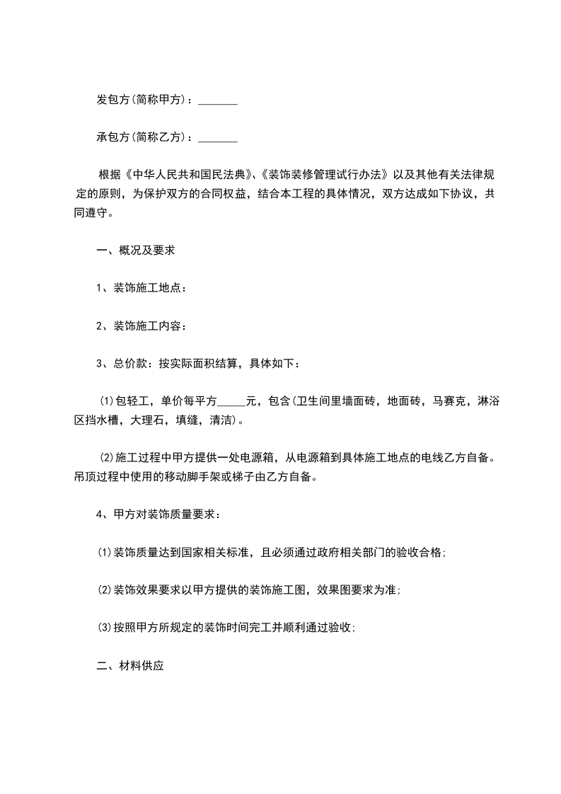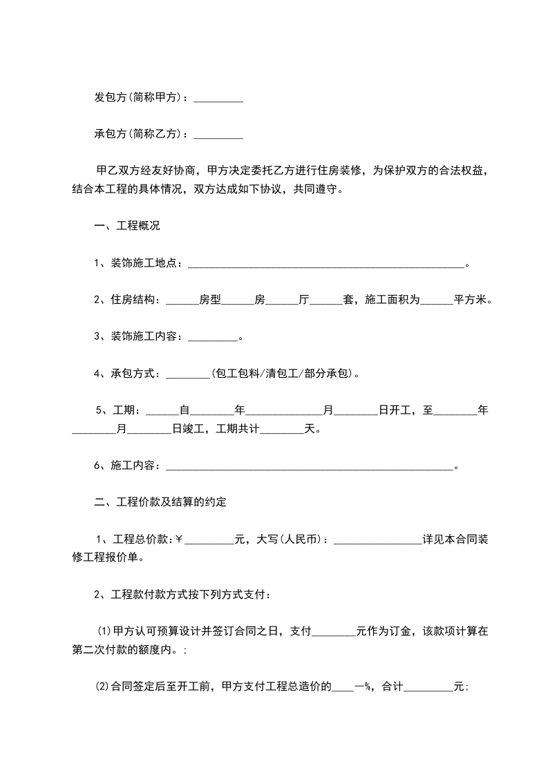 4、承包方式:________(包工包料/清包工/部分承包)。