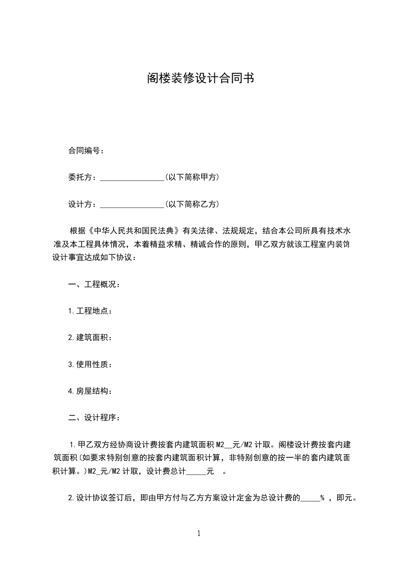 1.甲乙双方经协商设计费按套内建筑面积M2__元/M2计取。阁楼设计费按套内建筑面积(如要求特别创意的按套内建筑面积计算,非特别创意的按一半的套内建筑面积计算。)M2_元/M2计取,设计费总计_____元 。