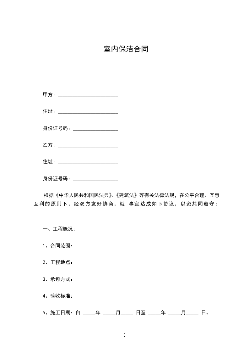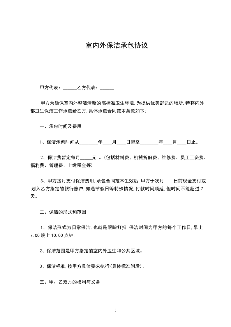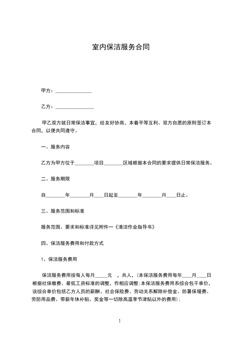 2、室内_____层墙、地、顶饰面清洗保洁按地面建筑面积计算,约 _____,协议单价按 _____元结算。估算造价: _____。总造价:_____ 。大写:( _______________)。