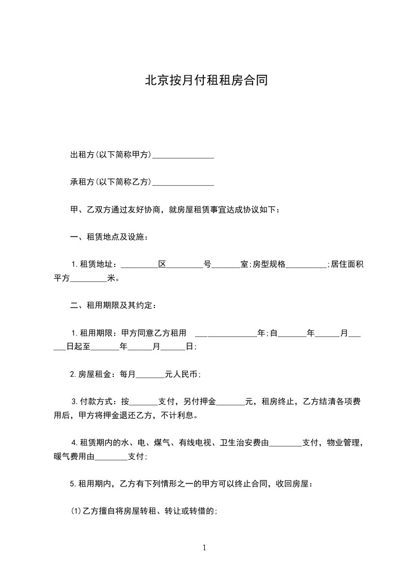 3.付款方式:按_______支付,另付押金_______元,租房终止,乙方结清各项费用后,甲方将押金退还乙方,不计利息。