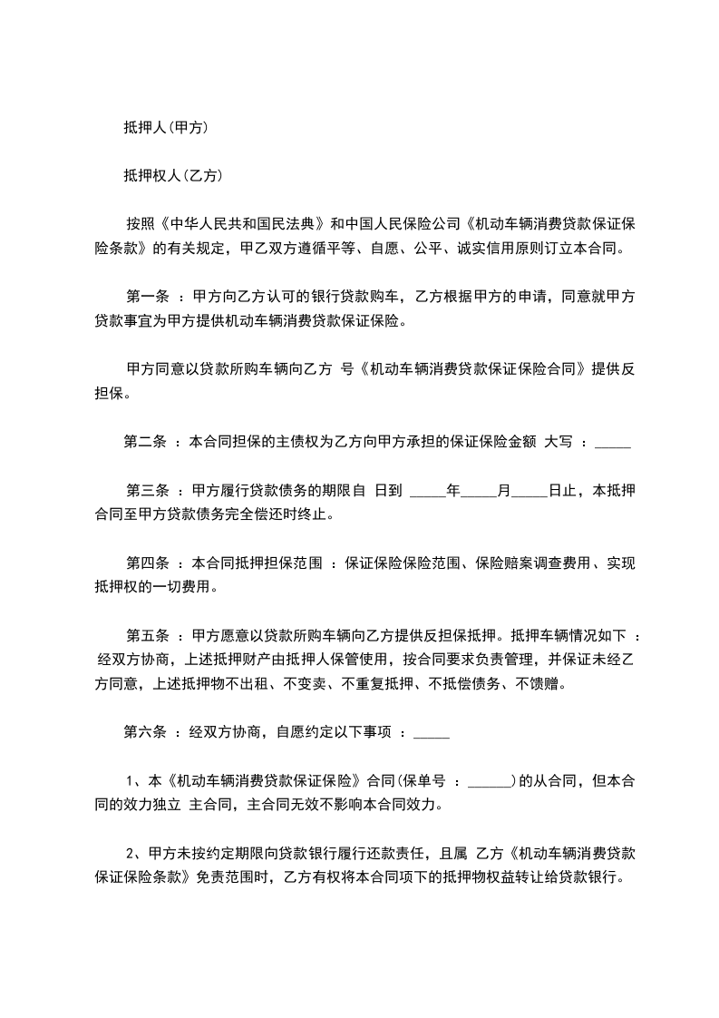 3、抵押车辆的保险,由甲方到保险公司办理投保手续,保险费用由甲方负担。