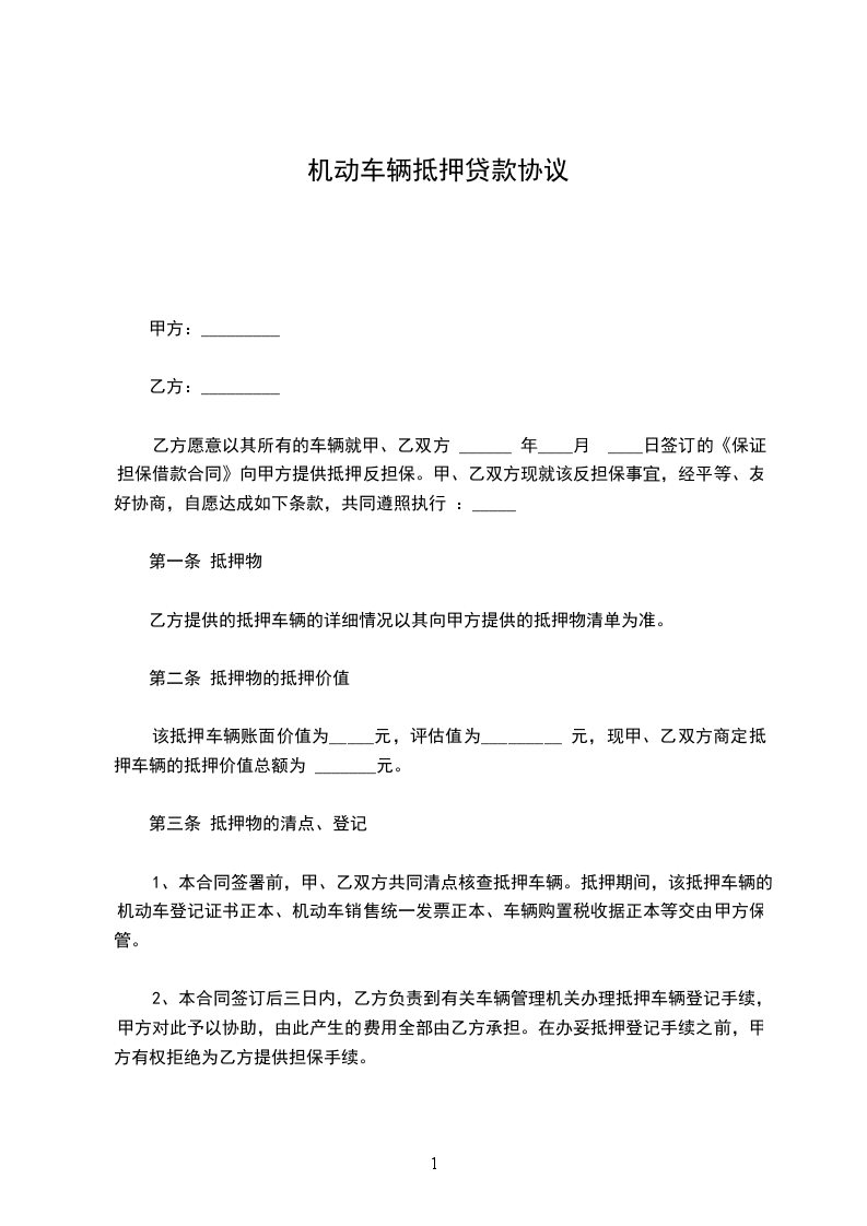 5、机动车抵押期间,如果价值有所减少,乙方认为有必要对机动车重新估价,甲方必须予以合作。重新估价后,乙方认为机动车价值不足以担保其债权时,甲方必须提前偿还部分或全部借款。
