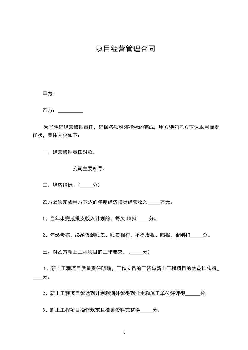 为了明确经营管理责任,确保各项经济指标的完成,甲方特向乙方下达本目标责任状,具体内容如下: