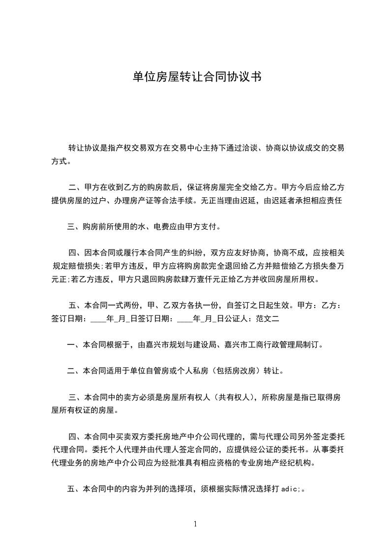 第二条 房屋转让价格