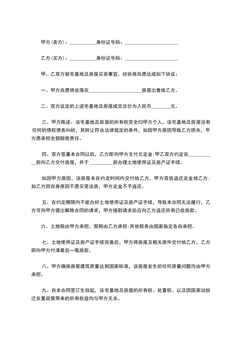 甲、乙双方就宅基地及房屋买卖事宜,经协商自愿达成如下协议: