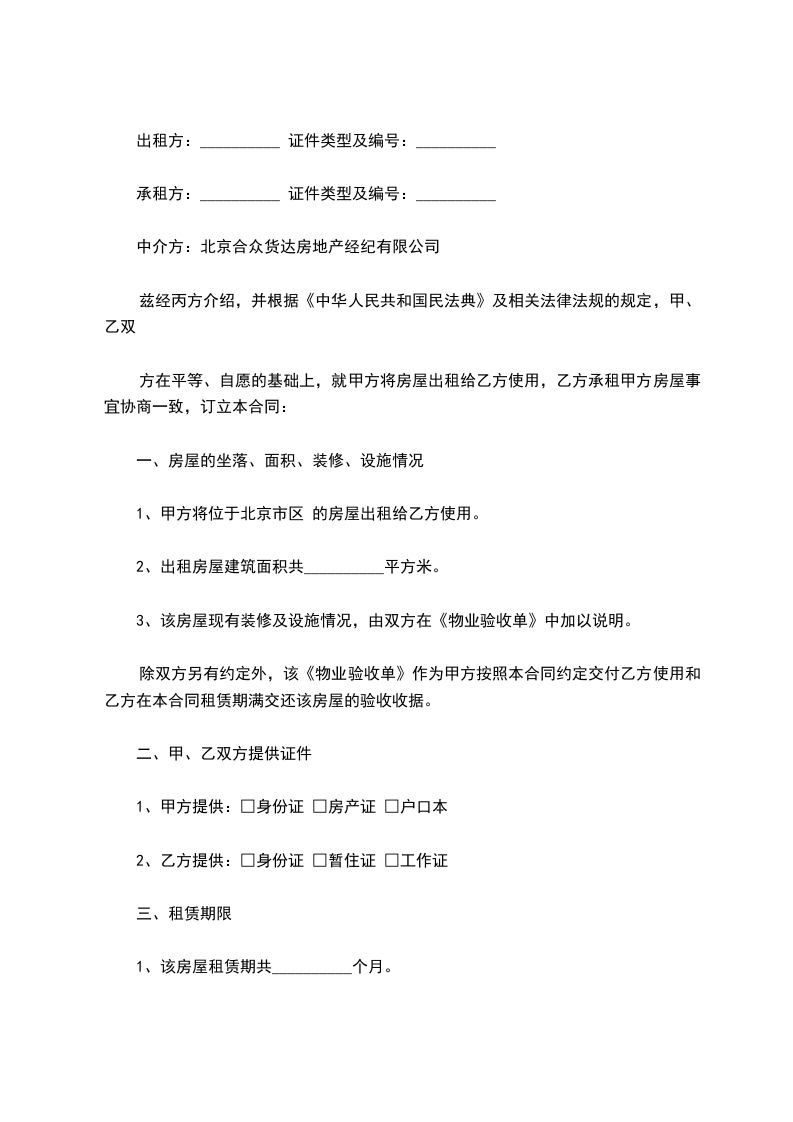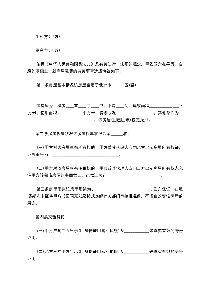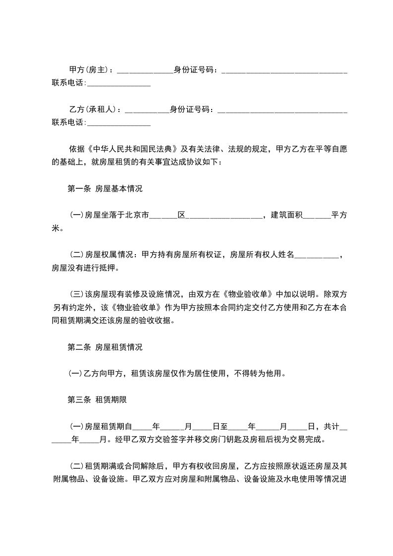 二、租房合同期为_______年,即_______年_______月_______日至_______年_______月_______日。