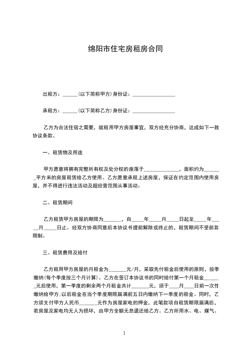 乙方为合法住宿之需要,就租用甲方房屋事宜,双方经充分协商,达成如下一致协议条款。