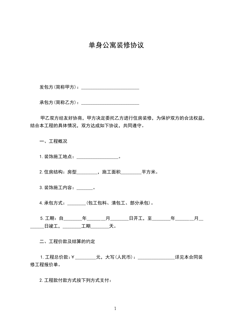 1.工程总价款:¥_________元,大写(人民币):________________详见本合同装修工程报价单。