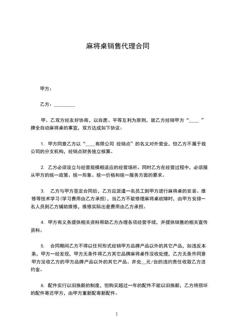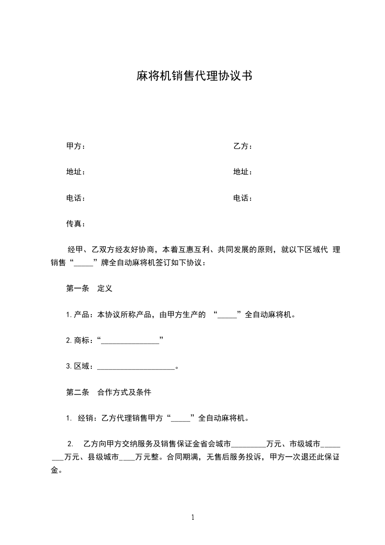 1. 经销:乙方代理销售甲方“奥东”全自动麻将机。