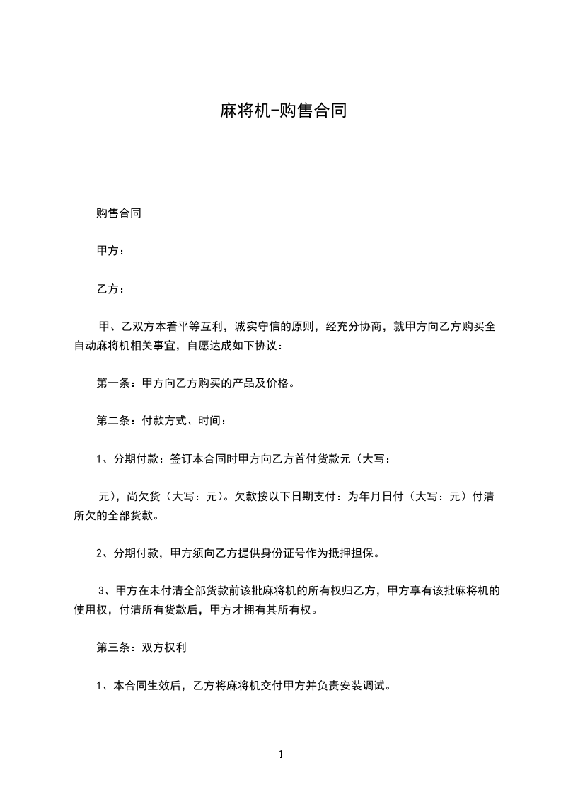 1.产品:本协议所称产品,由甲方生产的 “奥东”全自动麻将机。