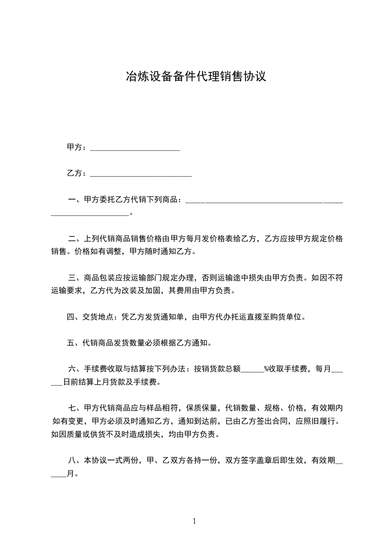 1. 经销:乙方代理销售甲方(设备名称)。