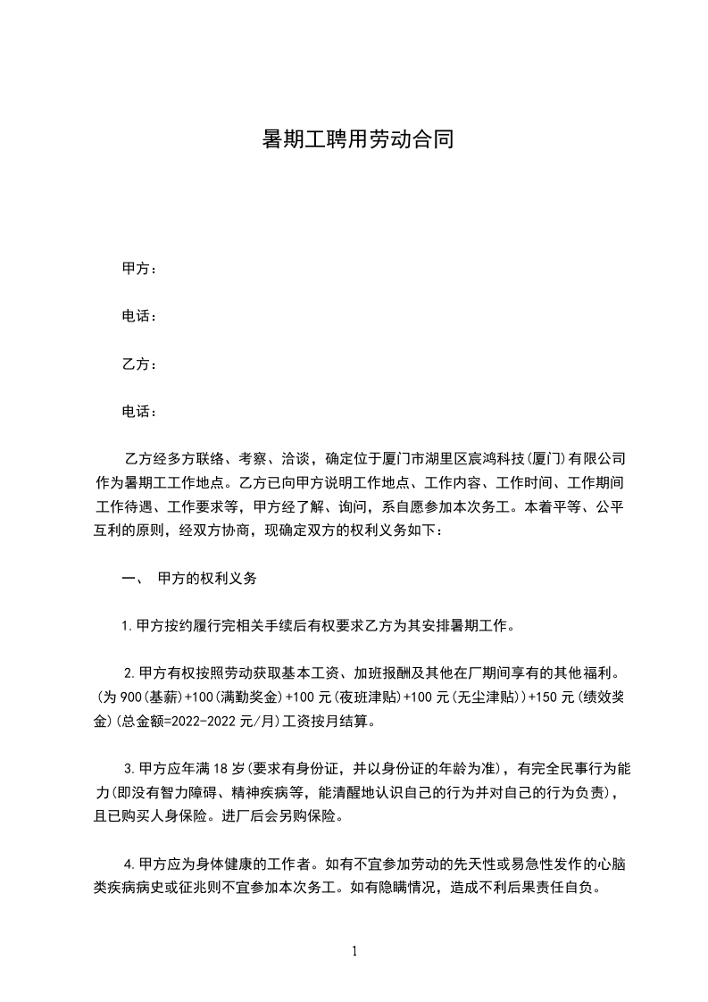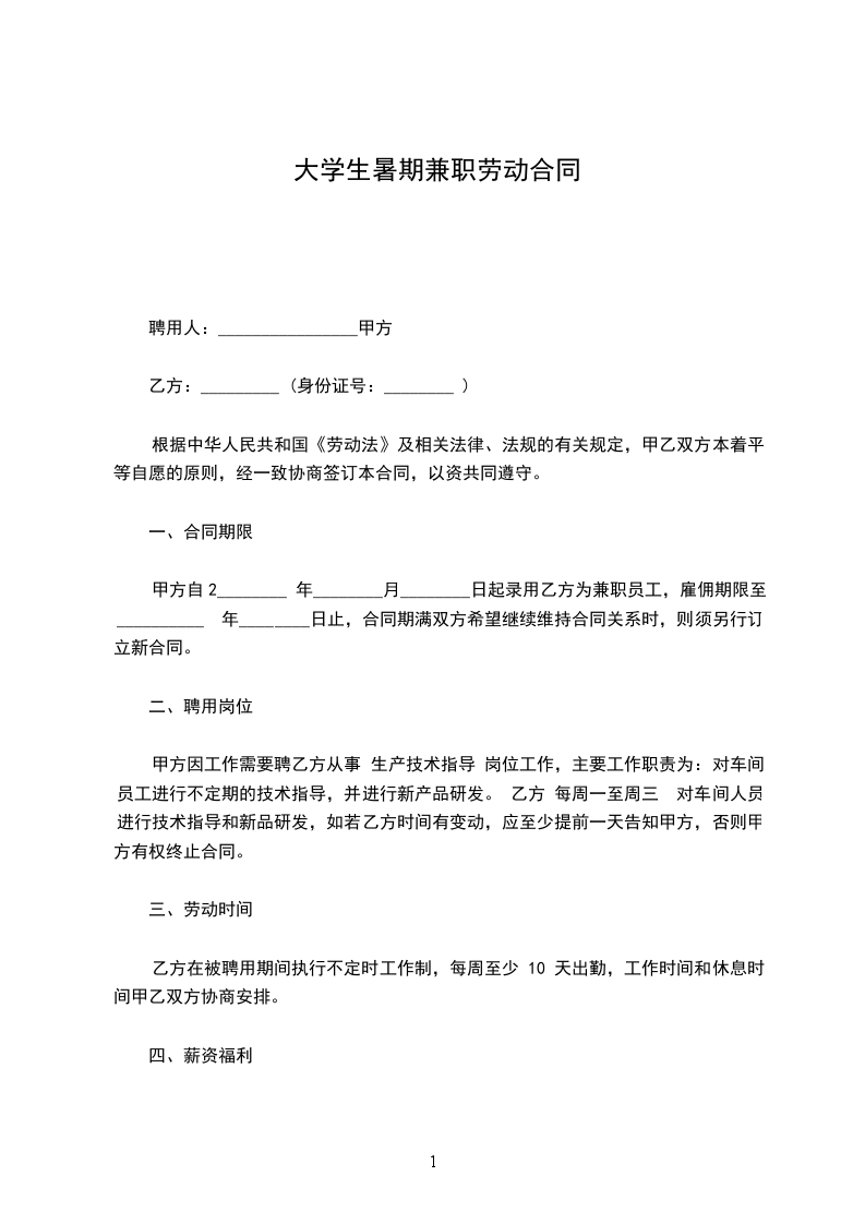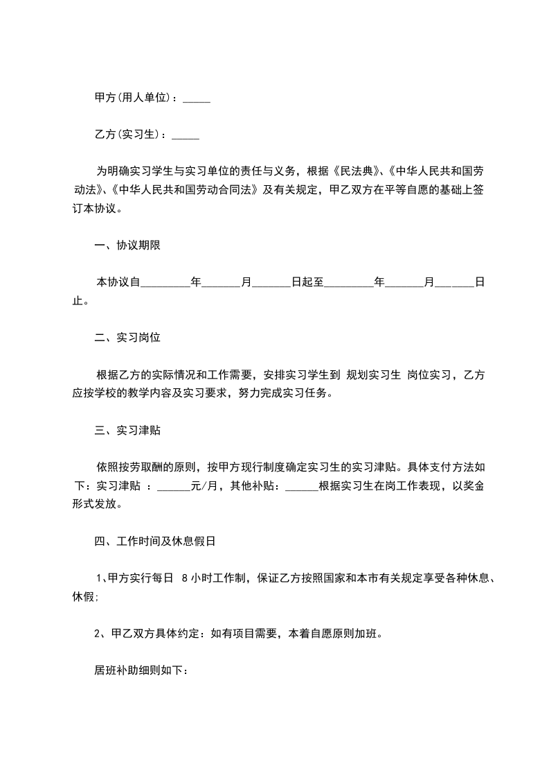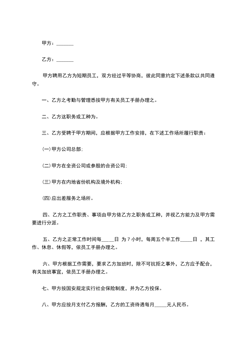 2、 在法律允许的条件下,乙方要服从甲方加班加点的安排,在未经过甲方的允许下,不得早退或者提前离开岗位。