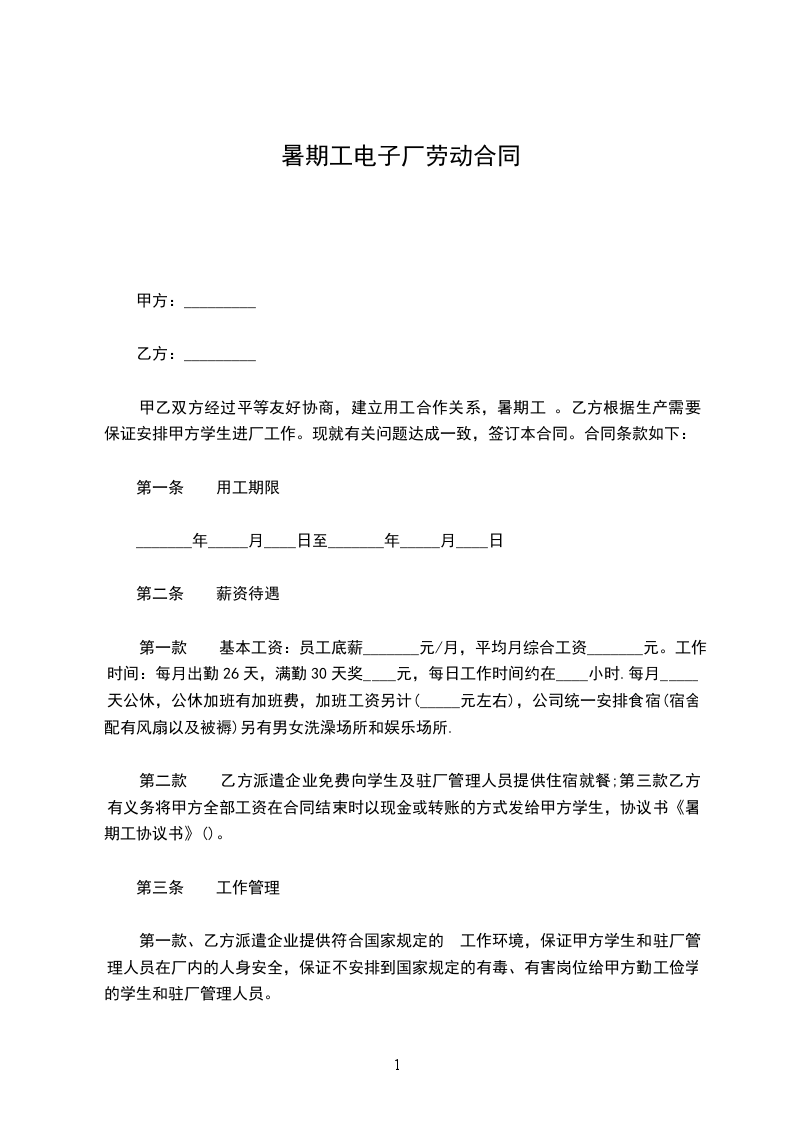 2. 甲方为乙方提供的工作场所,劳动工具必须符合国家安全,卫生标准,严格执行有关劳动保护的法律法规,保障乙方在劳动过程中的安全与健康。
