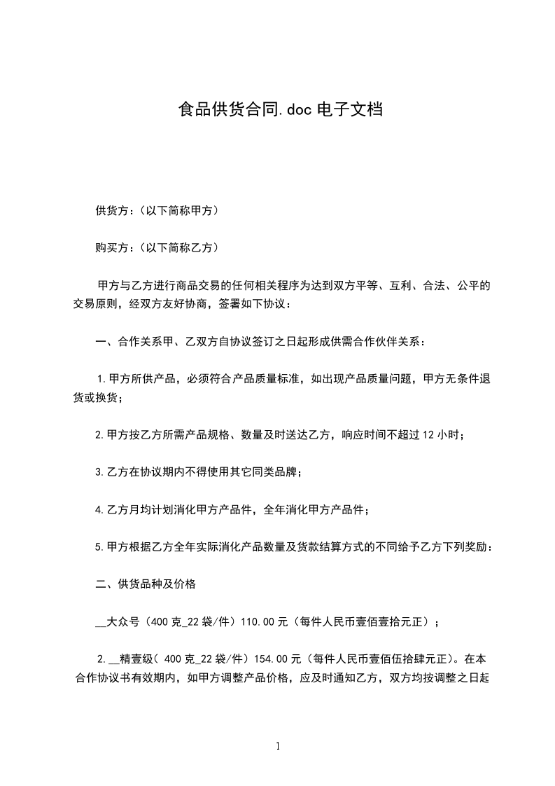 2、甲乙双方将按月定价,并参照_______省同类产品官方格。