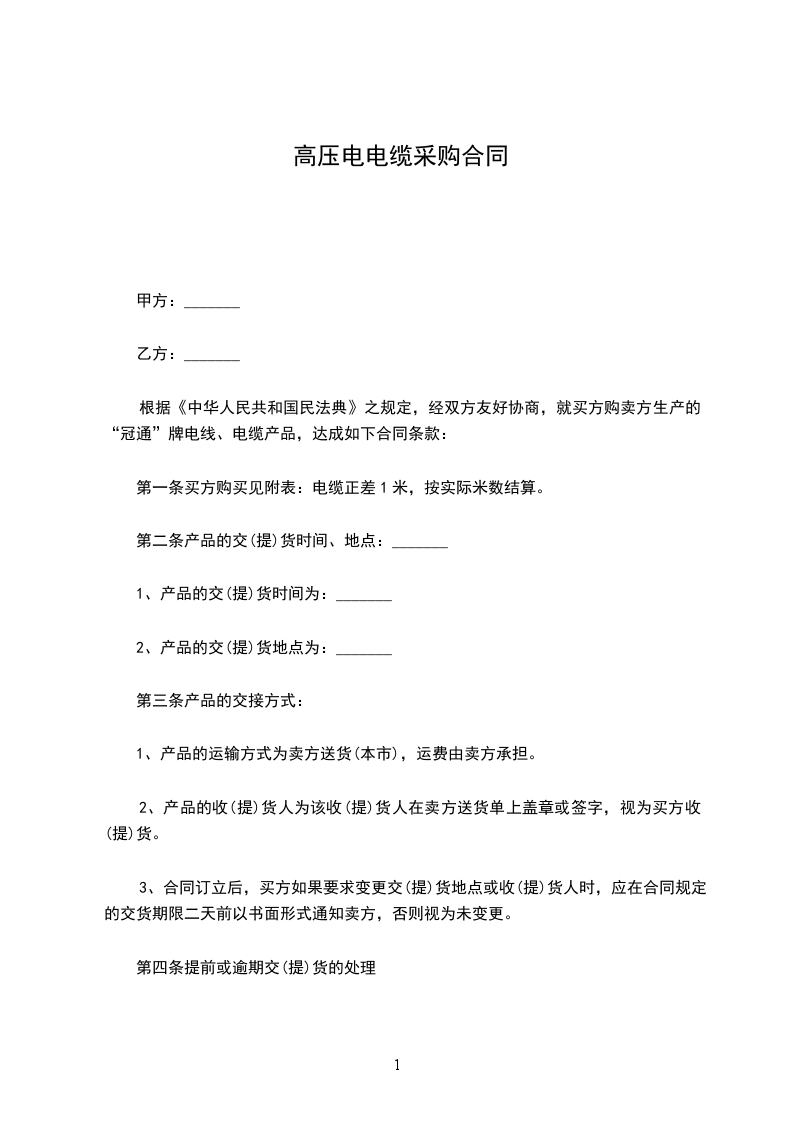 4.属甲方自提的材料,如甲方未按规定日期提货,每延期一天,应偿付乙方以延期提货部分货款总额万分之三的罚金。