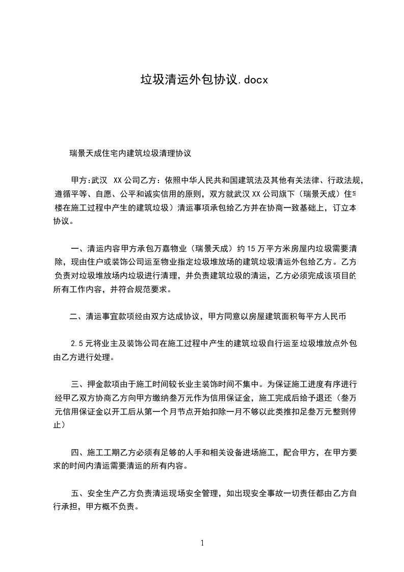 5、乙方在甲方清运垃圾期间的任何安全问题与甲方无关。